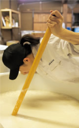 Since our brewery is very small, we do not rely on machine. We only produce our sake by hand, which is hardly seen in the recent brewing: washing big amount of rice by hands, and so on. While processing koji (rice malt), brewer checks the right temperature by hands. Moromi, (fermenting mixture of rice, koji, yeast, and water) management as well, using and trusting on human five senses and talk to moromi, listen to moromi, and taste moromi. Also as the last process, we don't squeeze moromi by machine. Moromi is hanged in the bag and dropped one by one. As a small brewery, keeps the traditional handcraft brewing.